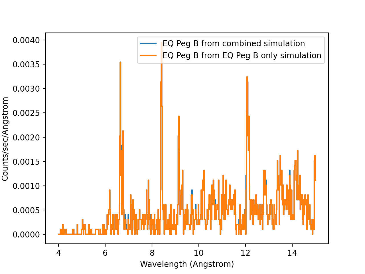 In the simulation we know exactly which photon comes from which star, so we can generate three fits files, one for EQ Peg A only, one for EQ PEg B only, and one that contains both sources, similar to the observed data.